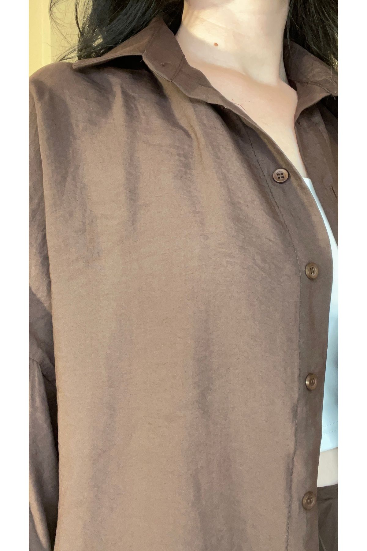 Ürün Özellikleri: • Materyal: %100 Pamuk • Renk: Acı Kahve (koyu ve tok kahverengi ton) • Parçalar: Düğmeli oversize gömlek + beli lastikli bol paça pantolon • Kumaş Türü: Yumuşak, hafif ve dökümlü • Kalıp: Salaş ve rahat kesim • Mevsim: İlkbahar – Yaz – Serin sonbahar akşamları ⸻ Model Üzerindeki Beden: • Boy: 172 cm • Kilo: 65 kg • Giyilen Beden: Medium ⸻ Bakım Talimatı: • 30°C’de makinede yıkanabilir • Ağartıcı kullanılmaz • Düşük ısıda ütülenebilir