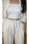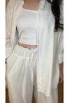 Kadın Oversize Gömlek Pantolon Takım – %100 Pamuk-Beyaz