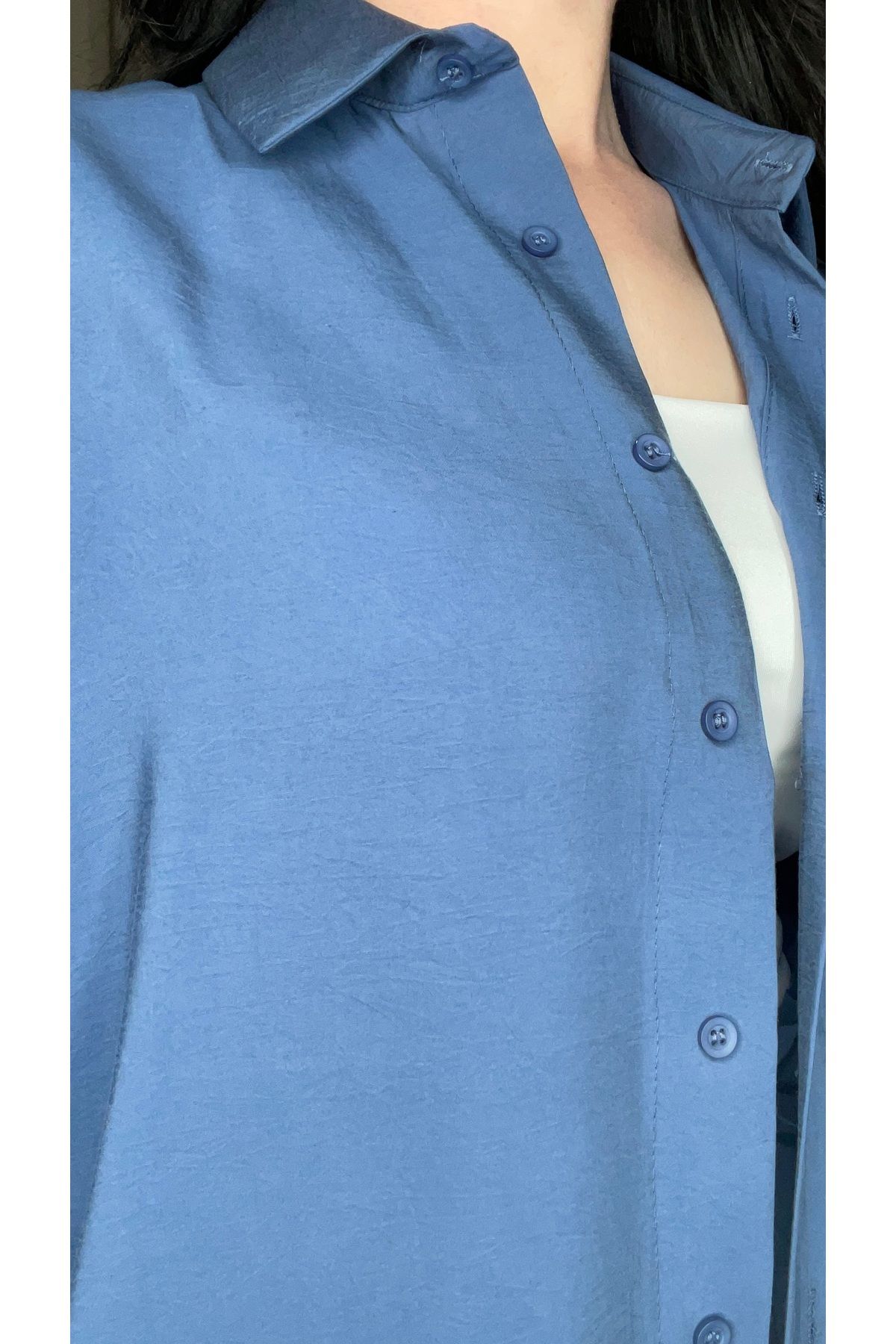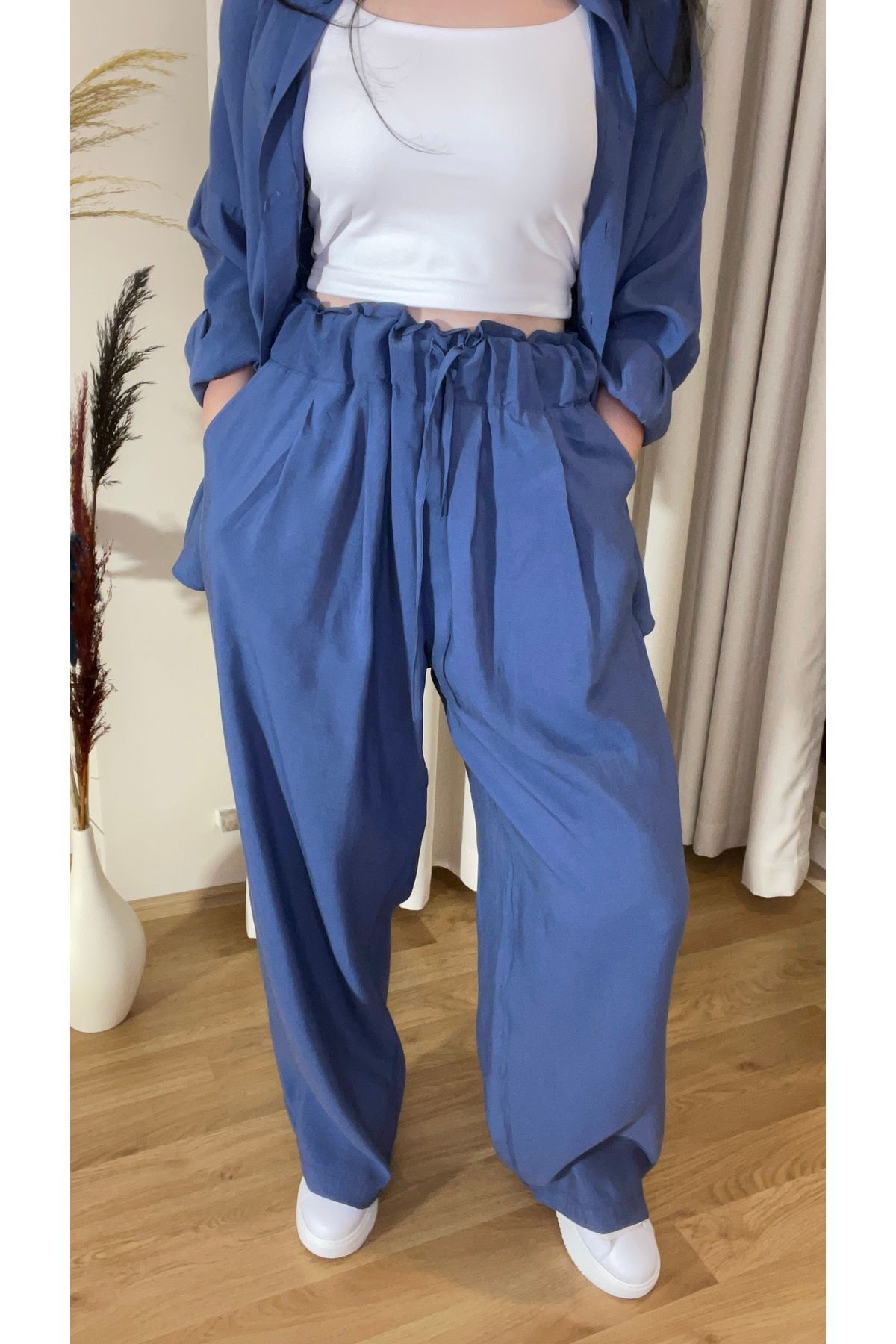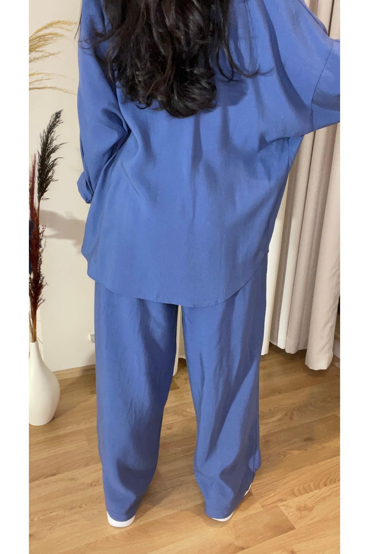 Kadın Oversize Gömlek Pantolon Takım – %100 Pamuk – İndigo