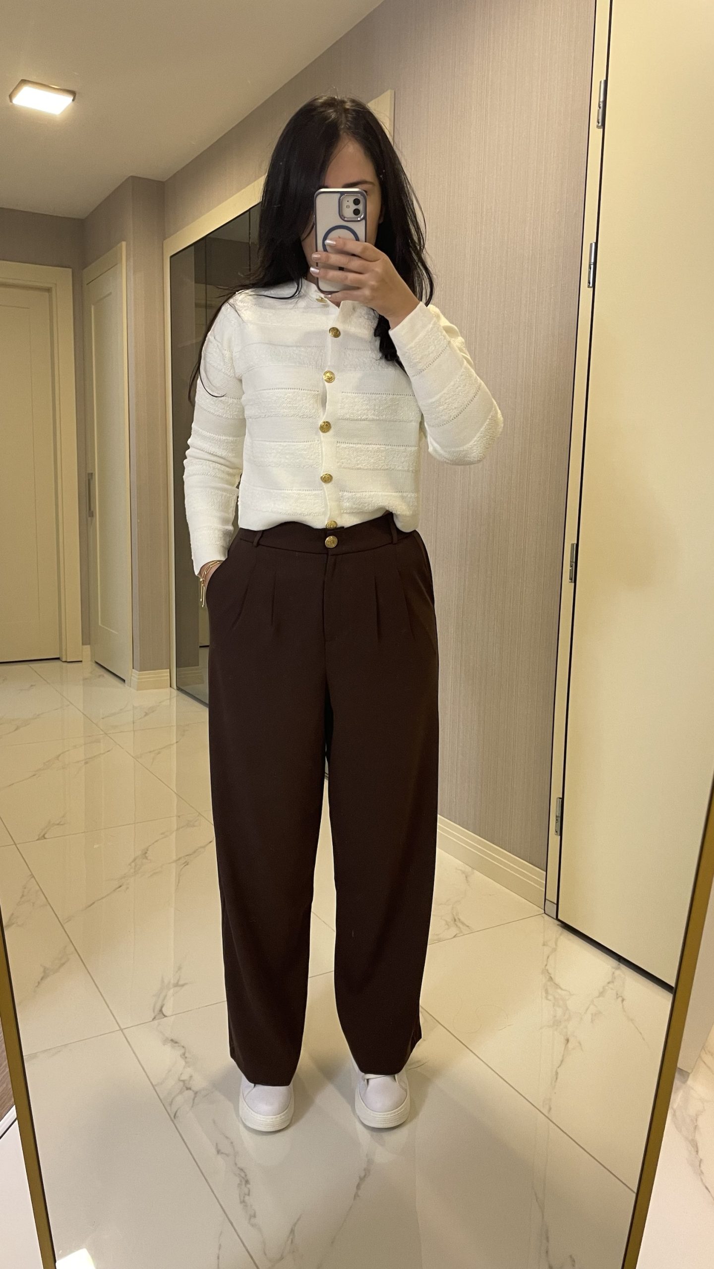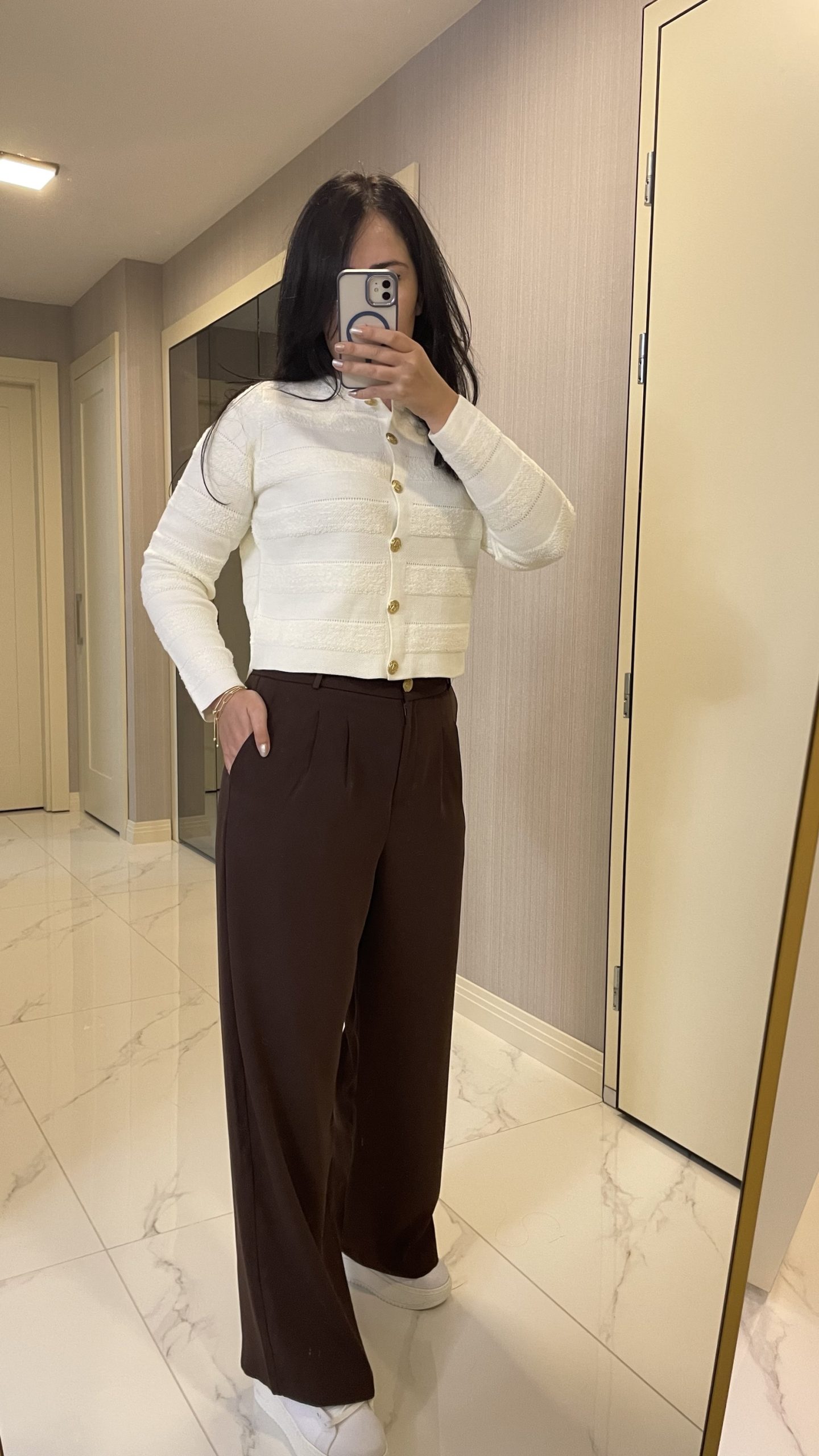 Kahverengi-Rahat Kesim Palazzo Pantolon – Bel Arkası Lastikli, Şık ve Konforlu