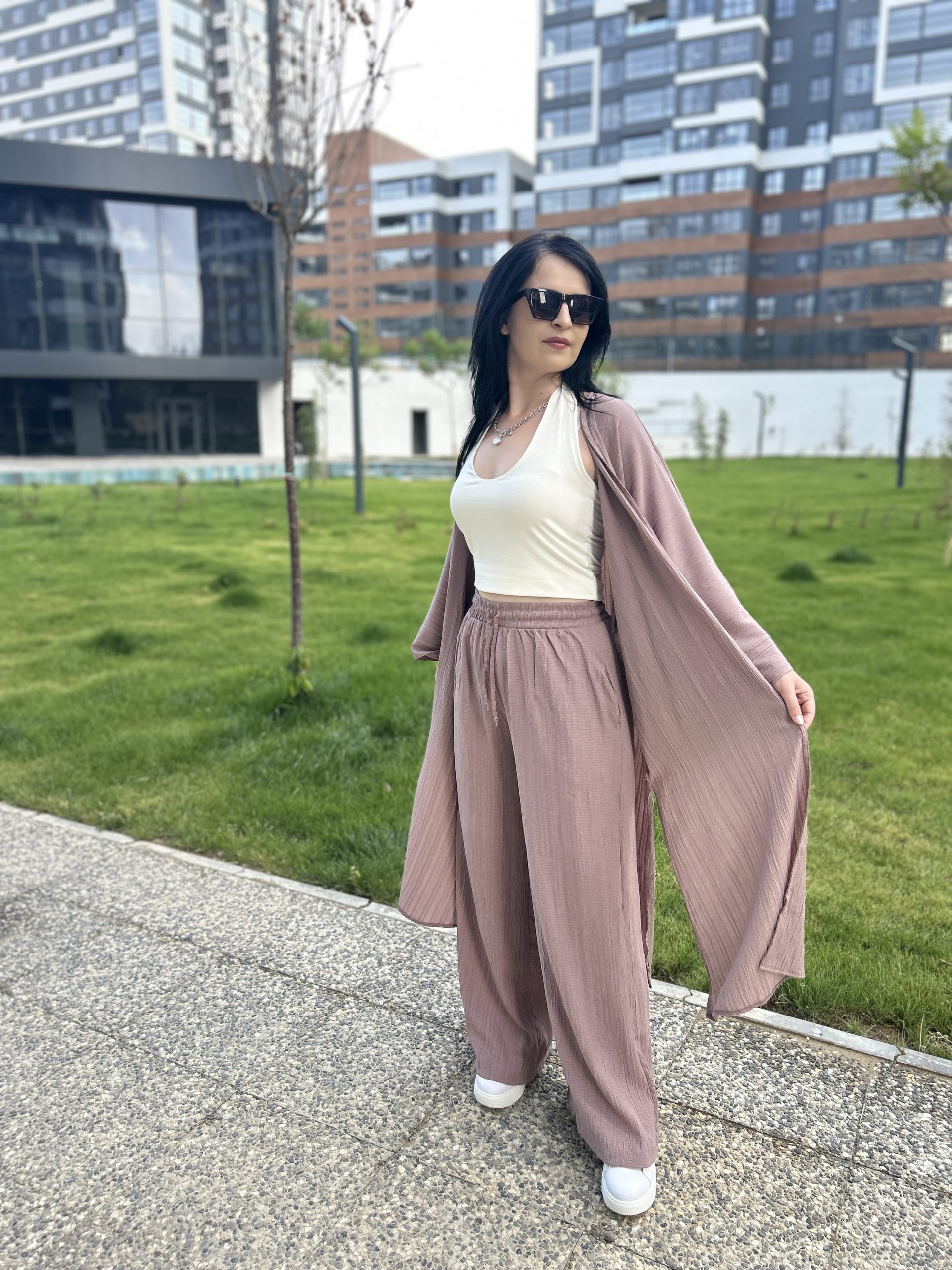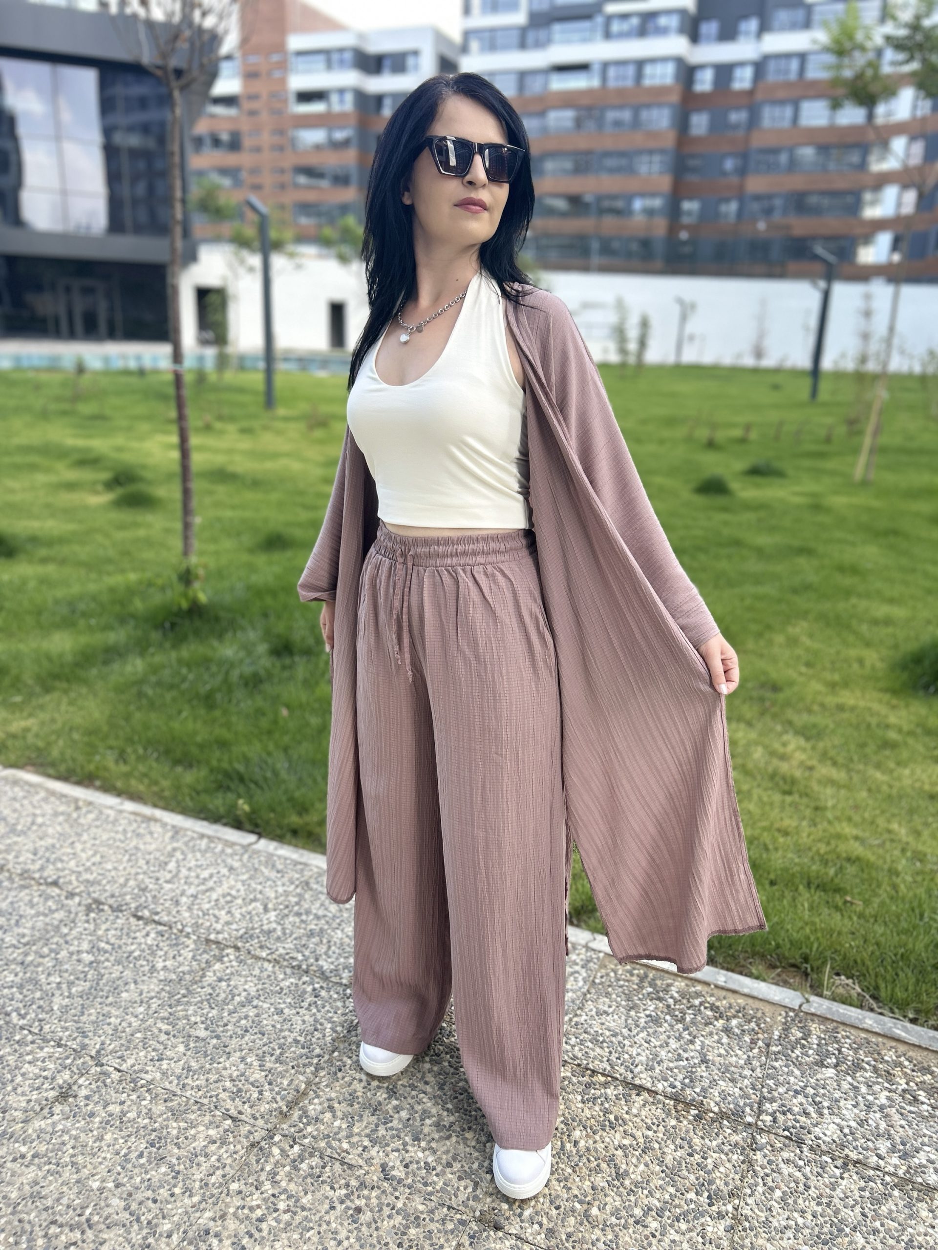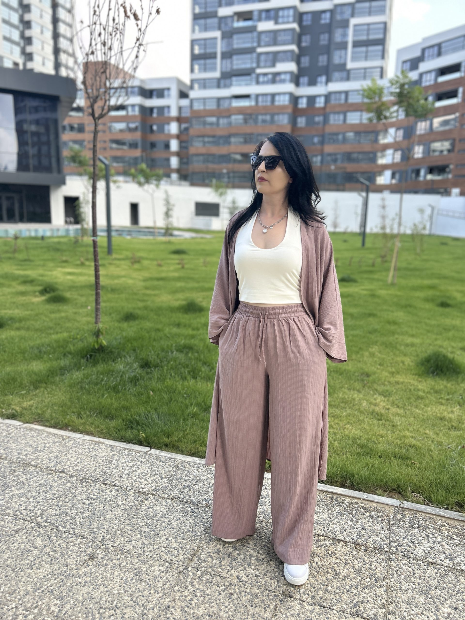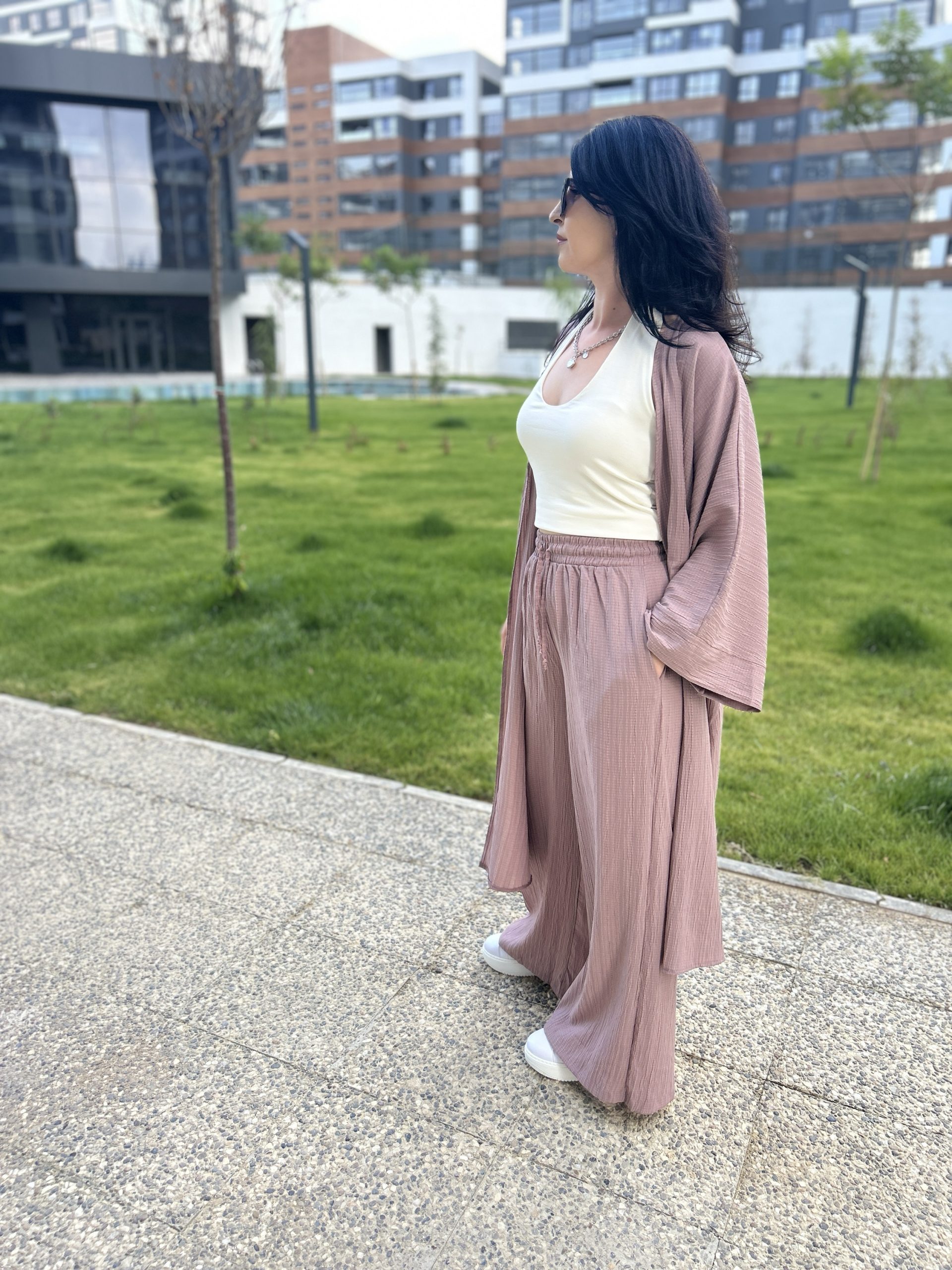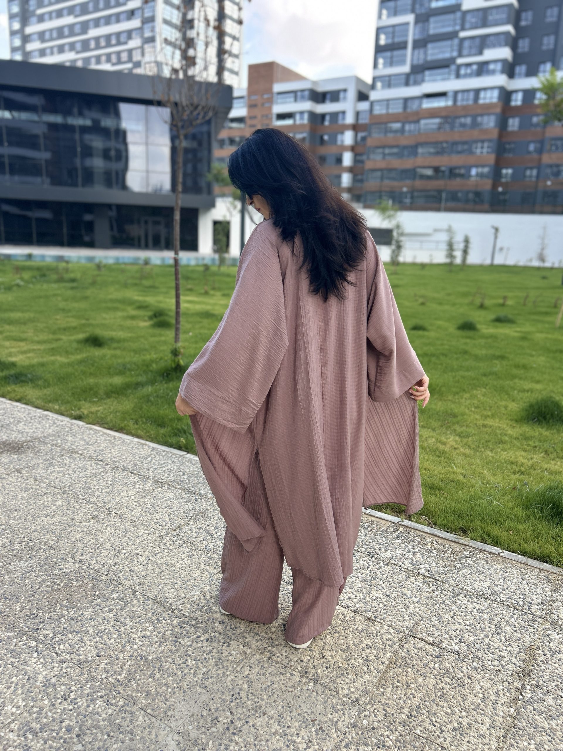 Uzun Kimono Gofre Takım-Gül Kurusu