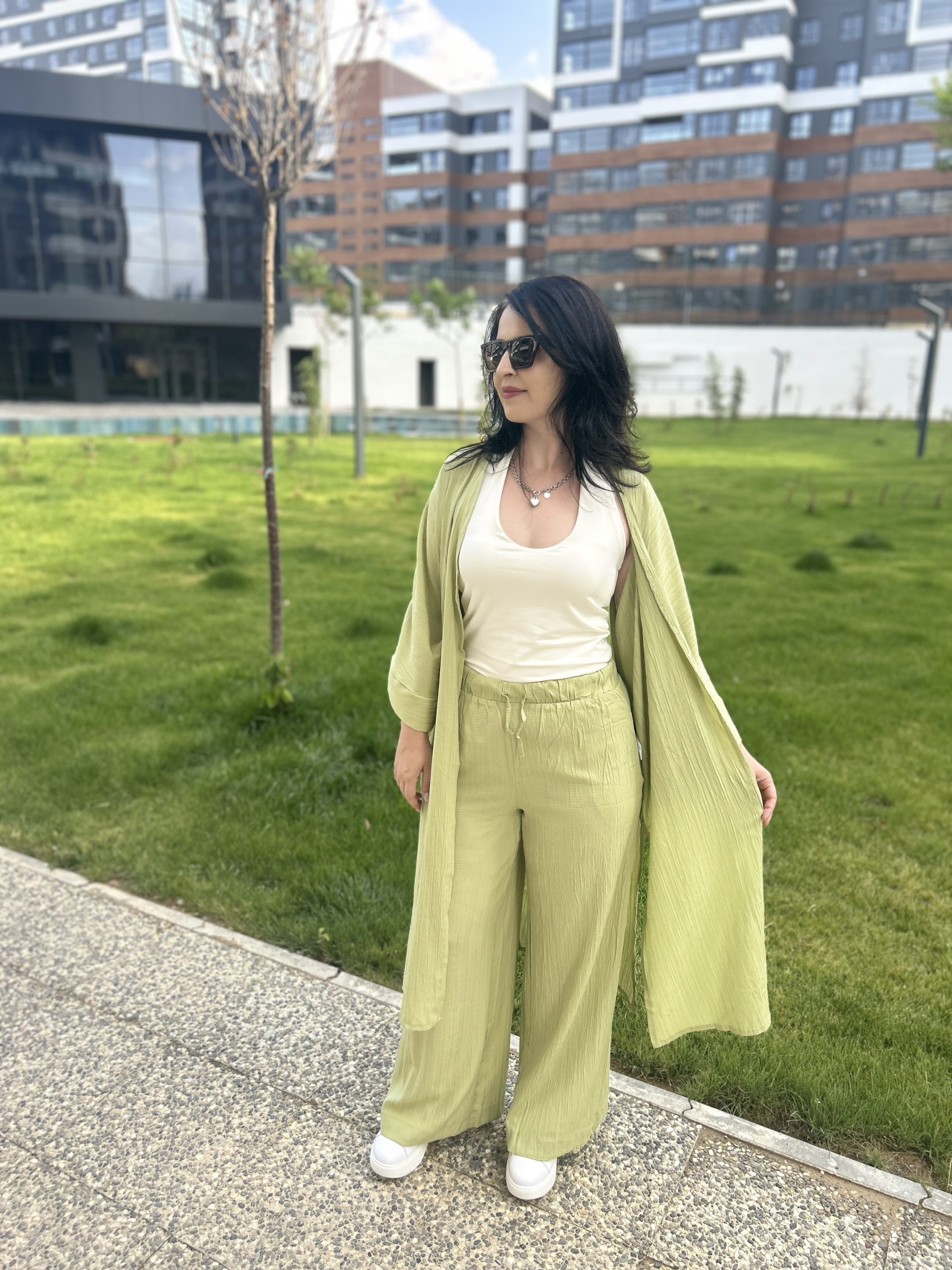 • Takım İçeriği: Uzun kimono + bol paça gofre pantolon